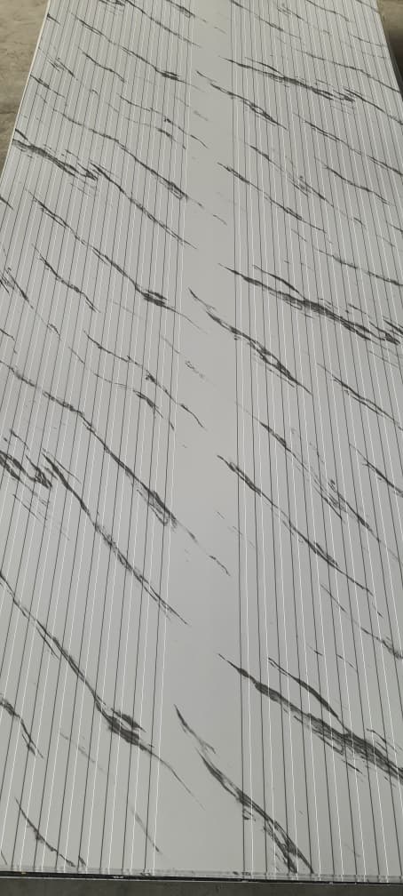 A unique hybrid panel combining the power of Thermoal PVC with the elegance of marble texture.